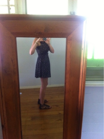 And I continue to provide swaddle manufactures with work, by buying yet another swaddle :-(. After baby G not sleeping well I thought maybe it's because the swaddle she had was an arms up one, so maybe being able to put her hands in her mouth (through the fabric) meant she was waking herself up more. I decided to try the Halo sleepsack ($25), FAIL! Luckily I can use it as a sleep sack withbopen arms so it's not a complete waste of money. I put the swaddle on with her arms down and she HATED it, and by hated it meant she squirmed with a very angry face and a loud bellow. I immediately took it off and out the arms up one back on - she liked that one. I also hate that the halo is zipper up, which means that the head hole is closed so you have to put it on like a shirt. I refuse to buy anymore even though i would love to try the love to dream swaddle and her sleeping is still on/off, but to be honest I think a lot of it is my failure to establish day sleeping schedules which I've started to do ( I just let her sleep when she wanted). Look of the day for me is Dotti dress $59.95 - this is a button down dress, it was hard to breastfeed in, but it was doable. Look of the day for G is a Target sesame street onesie, it came in a pack of three. She just had her six week vaccinations in this photo so wasn't giving me any smiles!